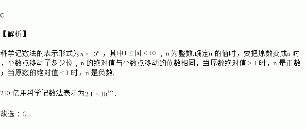 2017年上半年某地区用于推进义务教育均衡发展的资金约为210亿元,其中“210亿”可用科学记数法表示为( )