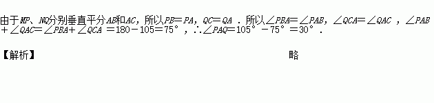 如图所示,∠BAC=105°,若MP和NQ分别垂直平分AB和AC.求∠PAQ的度数.