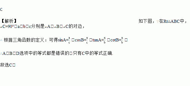 在Rt△ABC中,∠C=90°,a、b、c分别是∠A、∠B、∠C的对边,下列等式中,正确的是( )