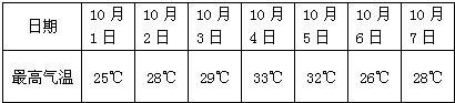 | 最高气温 | 25℃ | 28℃ | 29℃ | 33℃ | 32℃ | 26℃ | 28℃ |