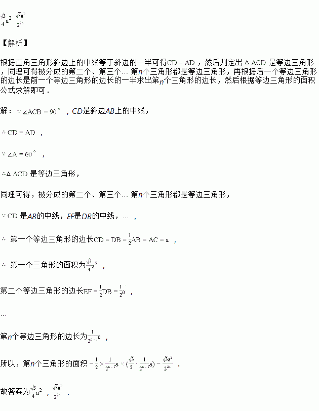 则第1个三角形的面积等于______,第n个三角形的面积等于______.![]()