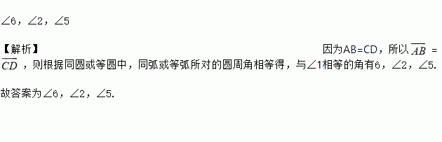 如图,在⊙O的内接四边形ABCD中,AB=CD,则图中与∠1相等的角有_________.