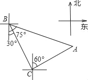 轮船从B处以每小时50海里的速度沿南偏东30°方向匀速航行,在B处观测灯塔A位于南偏东75°方向上,轮船航行半小时到达C处,在C处观测灯塔A位于北偏东60°方向上,则C处与灯塔A的距离是( )海里.