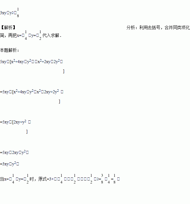 先化简,再求值:5xy﹣[x2+4xy﹣y2﹣(x2+2xy﹣2y2)],其中x=﹣,y=﹣.