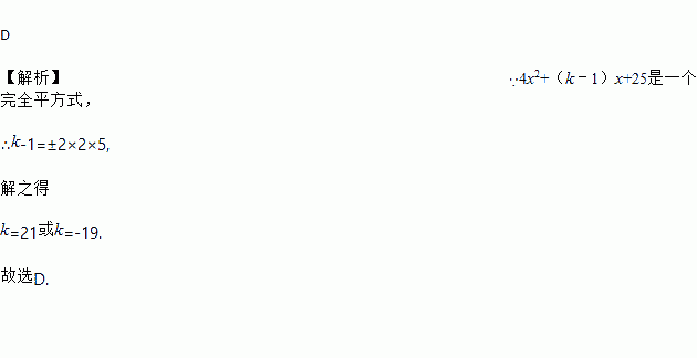 若4x2+(k﹣1)x+25是一个完全平方式,则常数k的值为( )