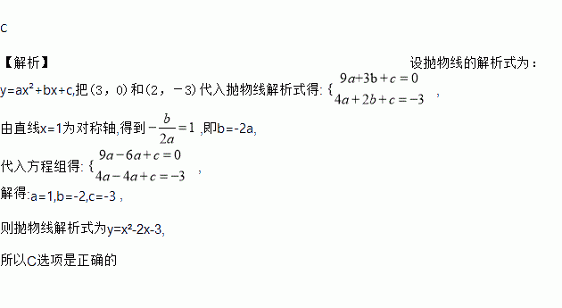 若抛物线经过点(3,0)和(2,-3),且以直线x=1为对称轴,则该抛物线的解析式为( )