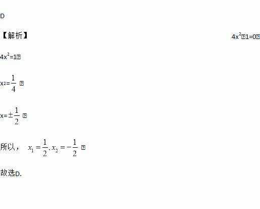 A. x1=1,x2=﹣1 B. x1=2,x2=﹣2 C. D.