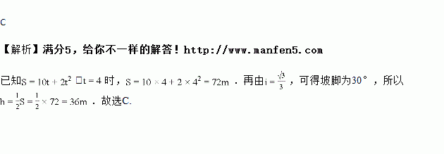 的斜坡笔直滑下,滑下的距离s(米)与时间t(秒)间的关系为s=10t+2t2,若滑到坡底的时间为4秒,则此人下降的高度为( )