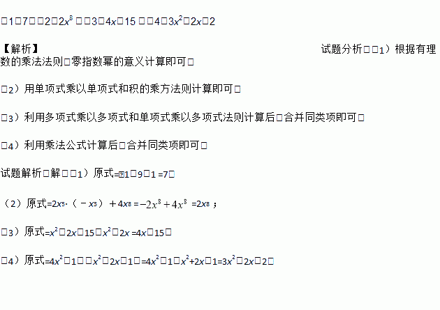 (3)(x+5)(x﹣3)﹣x(x﹣2) (4)(2x﹣1)(2x+1)﹣(x﹣1)2