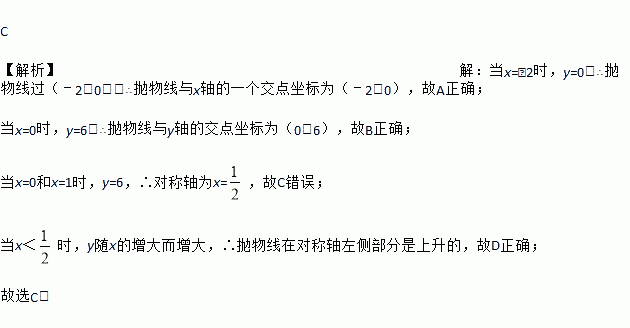 A. 抛物线与x轴的一个交点坐标为(﹣2,0) B. 抛物线与y轴的交点坐标为(0,6)