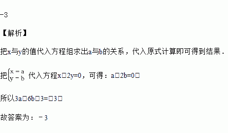 若是方程x﹣2y=0的解,则3a﹣6b﹣3=_____.