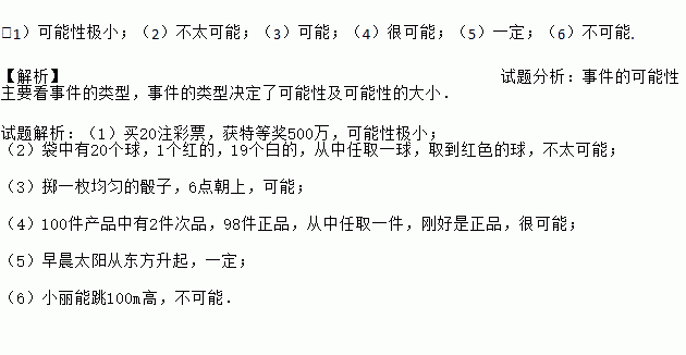 请用“一定”、“很可能”、“可能性极小”、“可能”、“不太可能”、“不可能”等语言来描述下列事件的可能性.