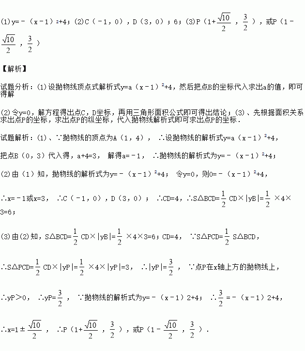 如图,已知抛物线的顶点为A(1,4),抛物线与y轴交于点B(0,3),与x轴交于C、D两点.点P是x轴上的一个动点.