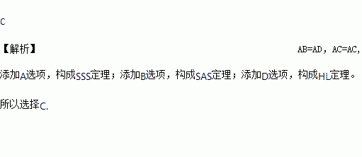 如图,已知AB=AD,那么添加下列一个条件后,仍无法判定△ABC≌△ADC的是( )