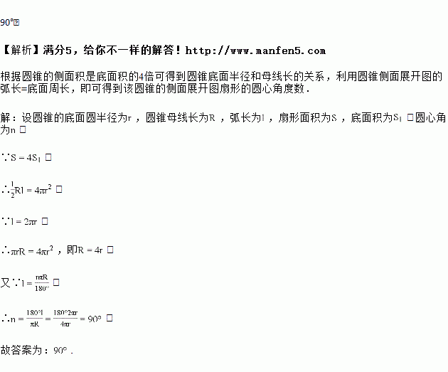 一个圆锥的侧面积是底面积的4倍,则圆锥侧面展开图的扇形的圆心角是______.