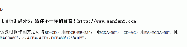 BC的长为半径作弧,两弧相交于两点M,N;②作直线MN交AB于点D,连接CD.若CD=AC,∠A=50°,则∠ACB的度数为( )
