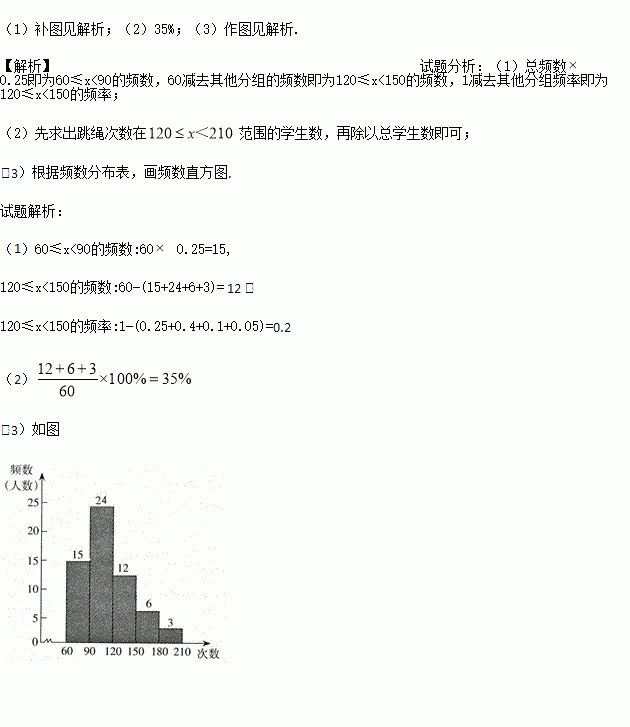 体育委员统计了全班同学60秒跳绳的次数,并列出下面不完全的频数分布表: