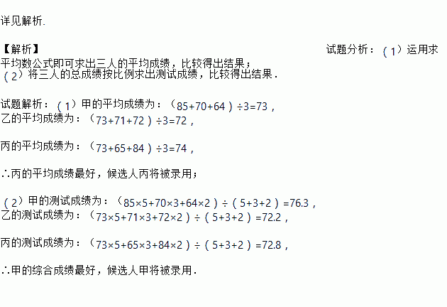 ijУÓûÕÐÆ¸Ò»ÃûÊýѧ½Ìʦ£¬Ñ§Ð£¶Ô¼×ÒÒ±ûÈýλºòÑ¡È˽øÐÐÈýÏîÄÜÁ¦²âÊÔ£¬¸÷Ïî³É¼¨Âú·Ö¾ùΪ100·Ö£¬¸ù¾Ý½á¹ûÔñÓżÓã¬ÈýλºòÑ¡È˲âÊԳɼ¨ÈçÏÂ±í£º