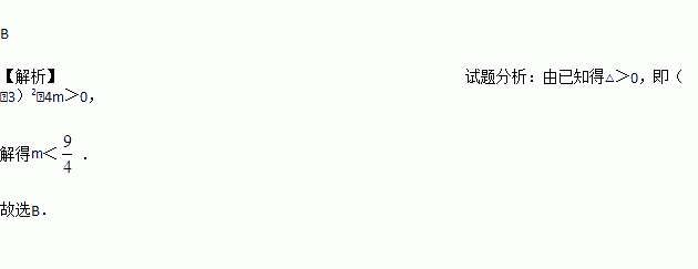 关于x的一元二次方程有两个不相等的实数根,则实数m的取值范围为( )
