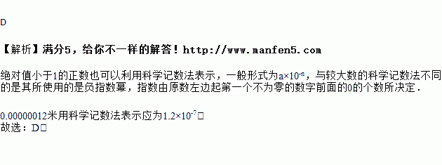 某种流感病毒的直径在米左右,将用科学记数法表示应为( )