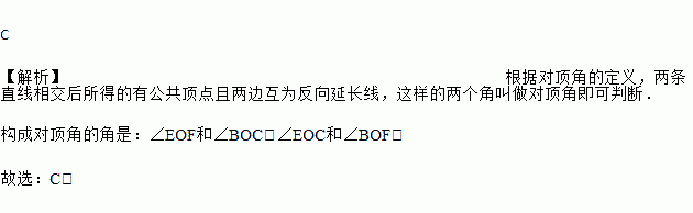 如图所示,BE,CF是直线,OA,OD是射线,其中构成对顶角的是( )