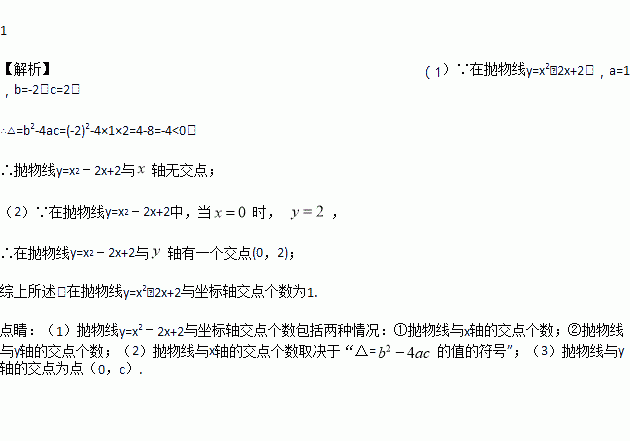 抛物线y=x2﹣2x+2与坐标轴交点个数为_____个.