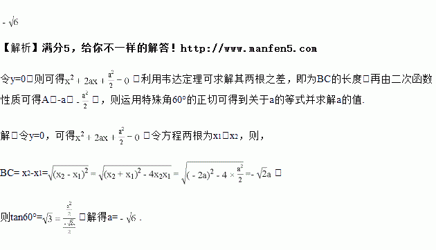 设二次函数的图象顶点为,与轴交点为、,当为等边三角形时,的值为________.