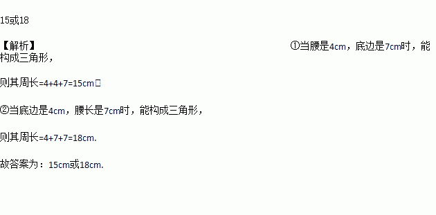 一个等腰三角形的边长分别是和,则它的周长是______________cm.