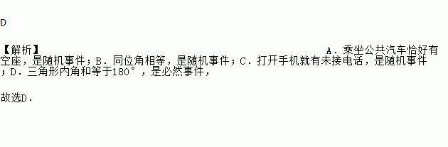 C. 打开手机就有未接电话 D. 三角形内角和等于180°