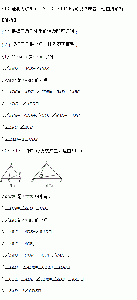 (2)如图②,若点D在CB的延长线上,其他条件不变,