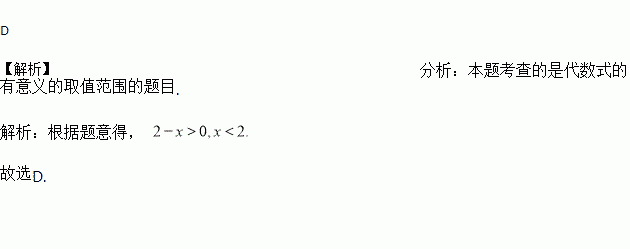 A. x≤2 B. x>2 C. x<2 D. x≥2