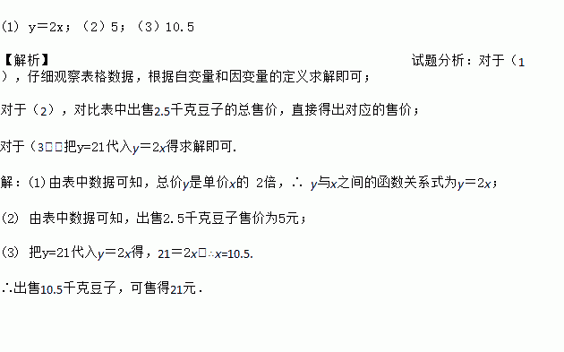 (3)根据你的推测,出售 千克豆子,可售得21元.