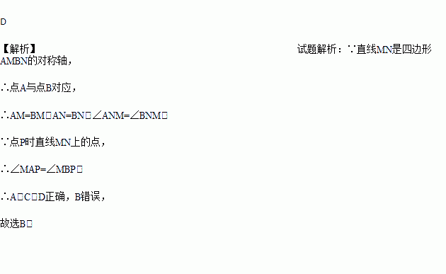如图,直线MN是四边形AMBN的对称轴,点P是直线MN上的点,下列判断错误的是( )