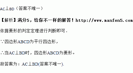 在?ABCD中,对角线AC,BD相交于点O.请你添加一个条件,使得四边形ABCD成为菱形,这个条件可以是_____.(写出一种情况即可)