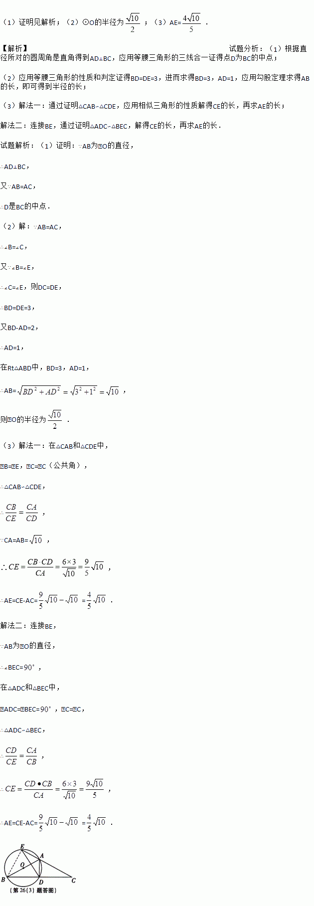 (2)若DE=3,BD﹣AD=2,求⊙O的半径;