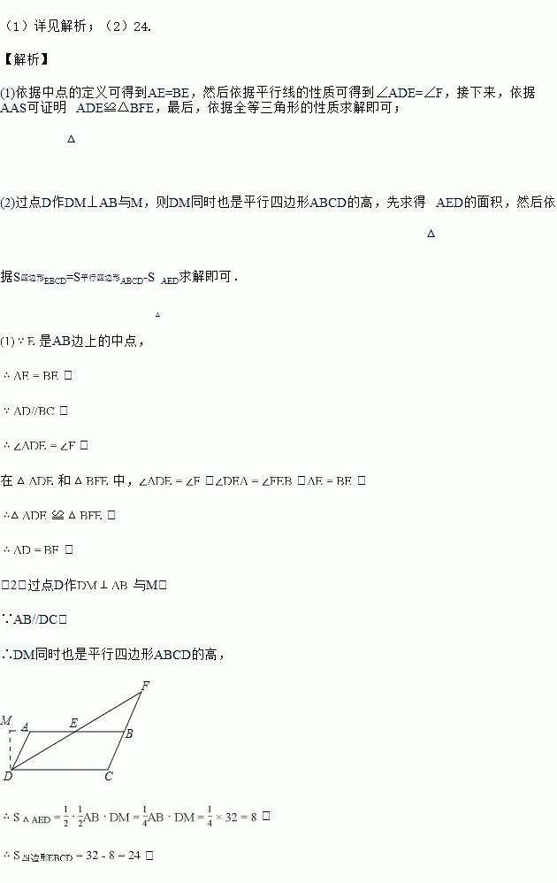 若平行四边形ABCD的面积为32,试求四边形EBCD的面积.