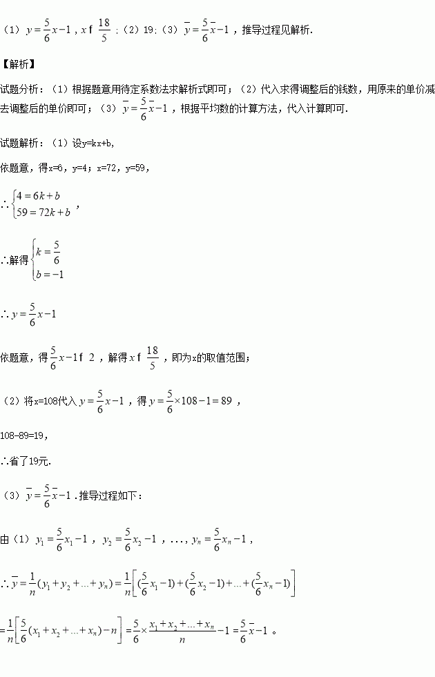 某商店能过调低价格的方式促销n个不同的玩具,调整后的单价y(元)与调整前的单价x(元)满足一次函数关系,如下表: