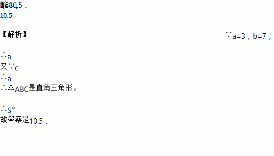 在△ABC中,a=3,b=7,c2=58,则S△ABC=_____.