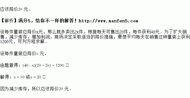 元.为了扩大销售,减少库存,增加利润,商场决定采取适当的降价措施,经过市场调查,发现如果每件童装每降价![]()