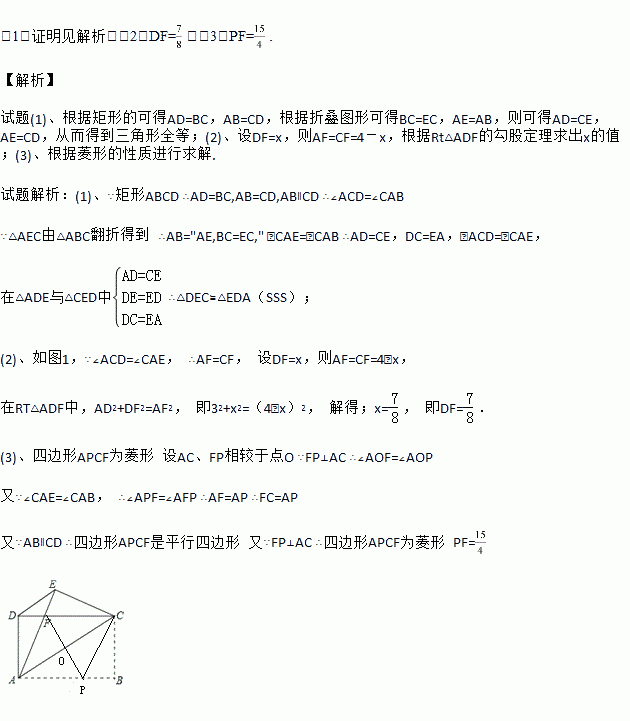 (3)在线段AB上找一点P,连结FP使FP⊥AC,连结PC,试判定四边形APCF的形状,并说明理由,直接写出此时线段PF的大小.
