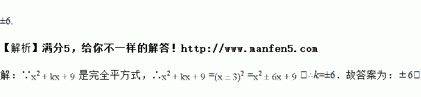 已知整式x2+kx+9是完全平方式,则k=_____.