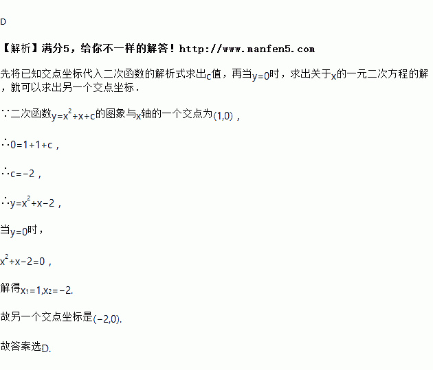 已知二次函数的图象与轴的一个交点为,则它与轴的另一个交点坐标是( )