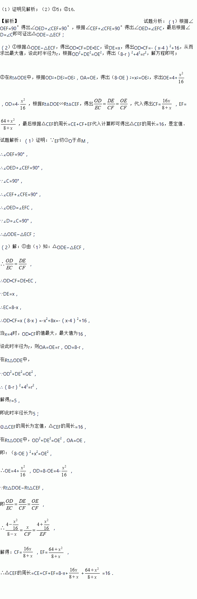 (1)求证:△ODE∽△ECF;