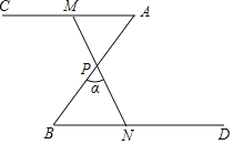 如图,∠A=∠B=50°,P为AB中点,点M为射线AC上(不与点A重合)的任意点,连接MP,并使MP的延长线交射线BD于点N,设∠BPN=α.