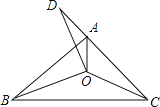 如图,△ABC三个内角的平分线交于点O,点D在CA的延长线上,且DC=BC,若∠D=20°,则∠ABC的度数为______.