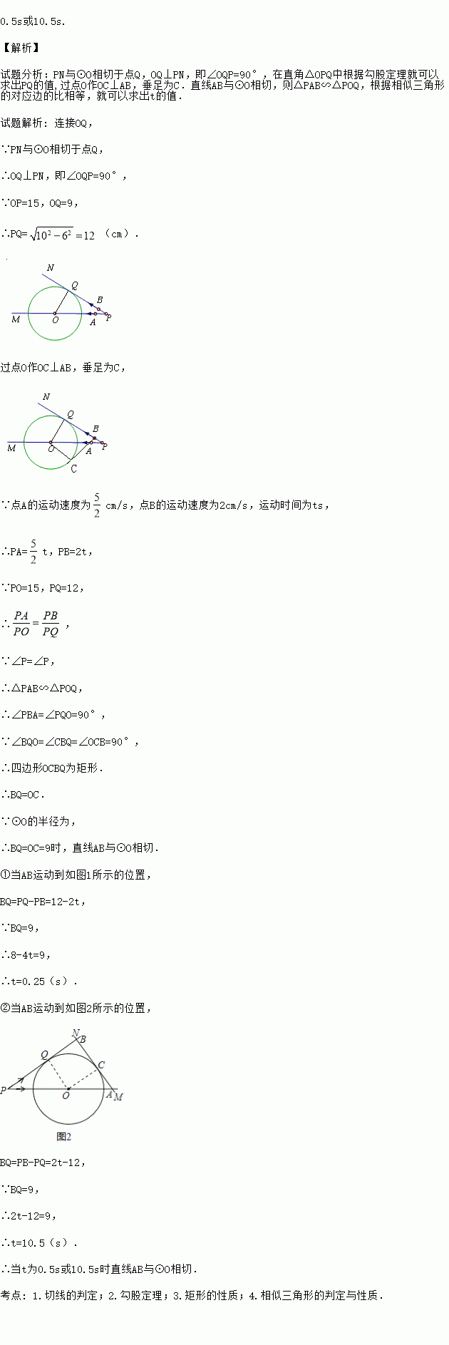 也自P点以2cm/s的速度沿射线