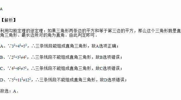 下列长度的三条线段能组成直角三角形的是( )