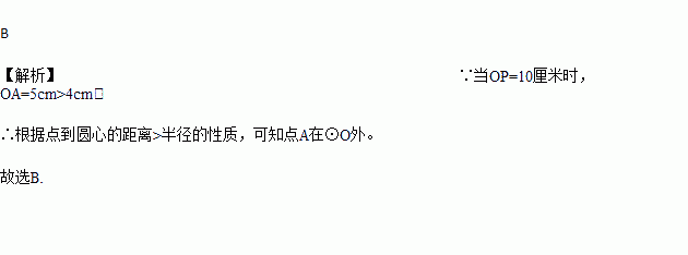 已知⊙O的半径为4,A为线段PO的中点,当OP=10时,点A与⊙O的位置关系为( )