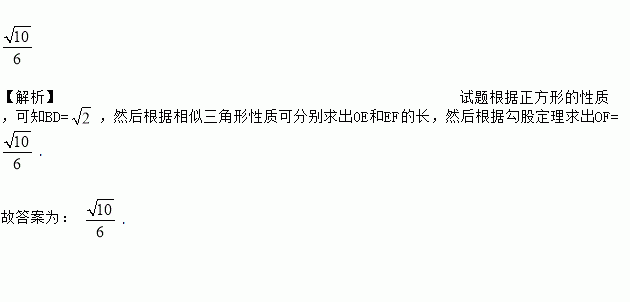 如图,正方形ABCD的边长为1,对角线AC,BD相交于点O,P是BC延长线上一点,AP交BD于E,交CD于H,OP交CD于F,若EF∥AC,则OF的长为_____________.