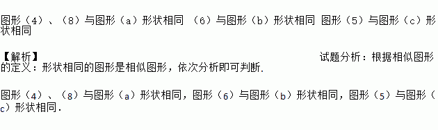 观察下面图形,指出(1)~(9)中的图形有没有与给出的图形(a)、(b)、(c)形状相同的?